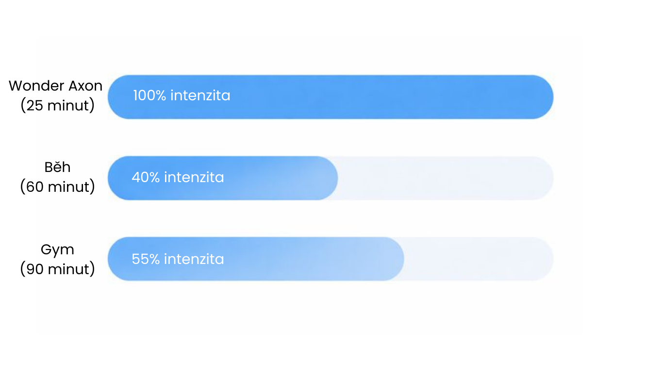 Zatímco při běžném cvičení mozek zapojuje cca 40-60% svalových vláken, Wonder Axon díky externím impulsům aktivuje až 100% cílené tkáně.